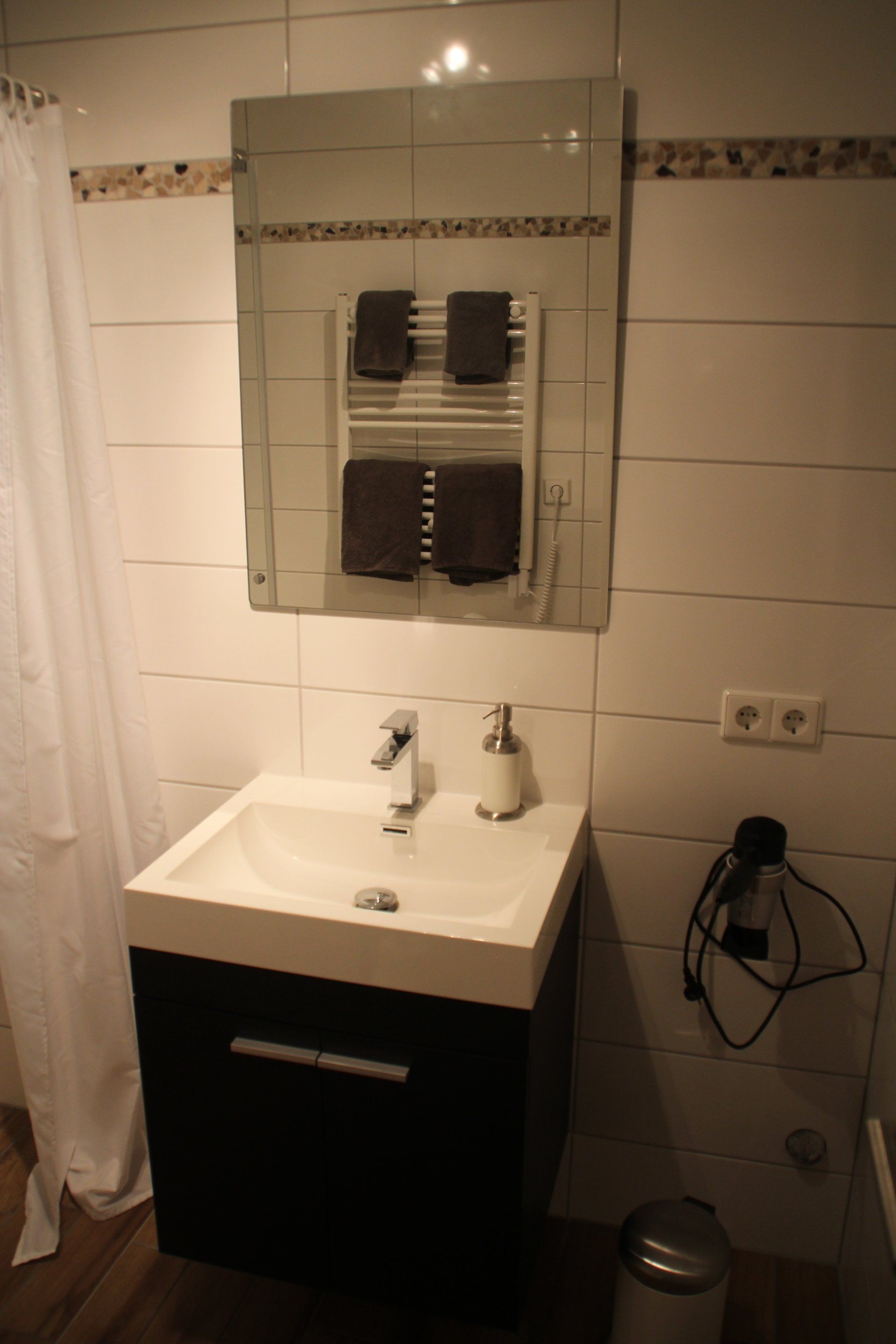 - Badezimmer mit ebenerdiger Dusche, Fön